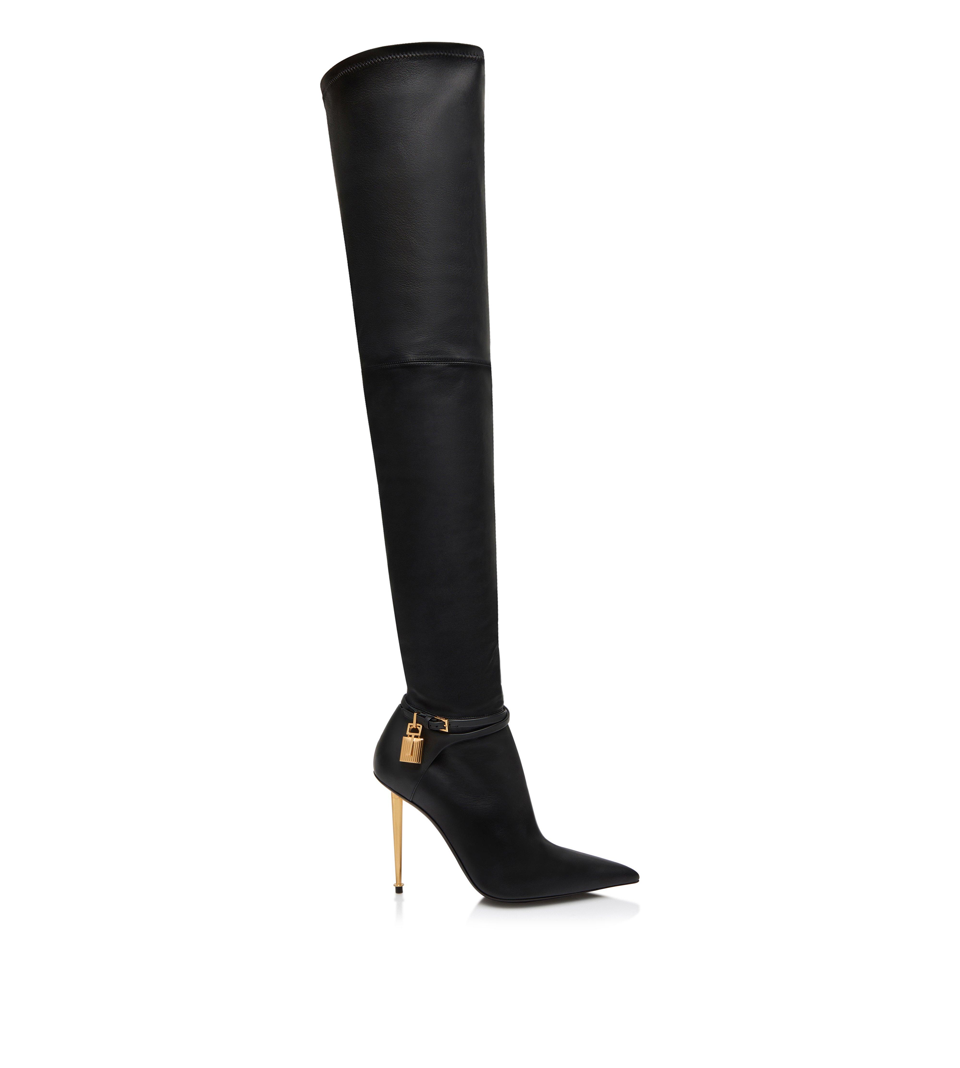 STRETCH NAPPA LEATHER PADLOCK OVER THE KNEE BOOT Very well made.