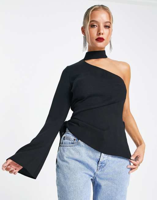 ASOS DESIGN Top nero con una manica collarino e allacciatura laterale Very well made.