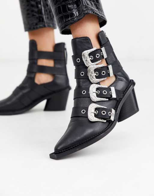 Topshop heeled western boots with multi buckles in black Very well made.
