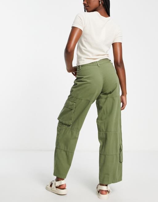 Topshop relaxed low slung cargo pants in khaki Very well made.