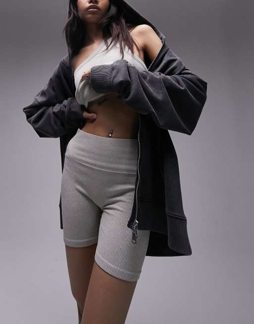 Topshop co ord seamless rib crop legging short in oat marl ASOS Very well made.