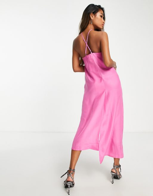 Topshop strappy slip midi dress in fuscia Very well made.