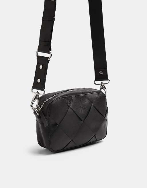 Topshop leather weave crossbody bag in black Very well made.