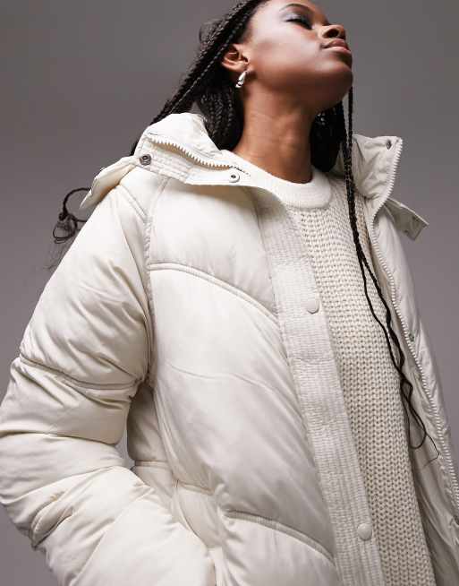 Topshop longline puffer jacket in off white Very well made.
