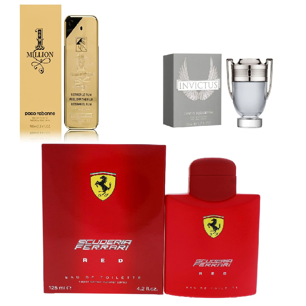 KIT 3 Perfumes Masculinos Invictus One Million Pacco Rabanne Ferrari Red 50ml Very well made.