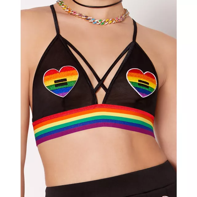 Rainbow Striped Pride Heart Bralette Spencer s Very well made.
