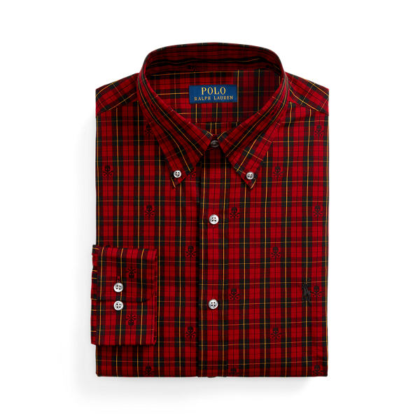Slim Fit Plaid Skull and Bones Shirt Very well made.