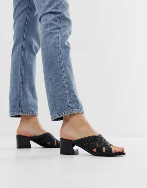 Vagabond bella black woven heeled mules Very well made.