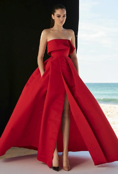 Alex Perry Adeline Silk Grosgrain Strapless Gown In Red ModeSens Very well made.