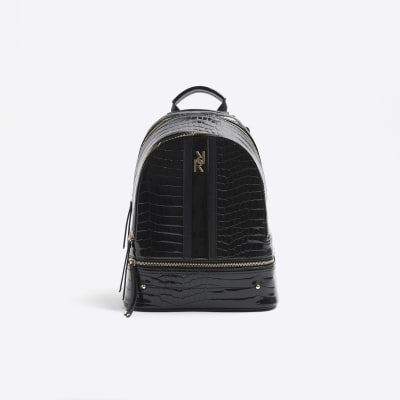 Black patent croc embossed backpack River Island Very well made.