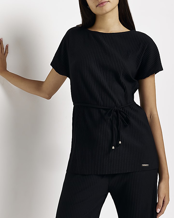 River Island Plisse hybrid belted top in black Very well made.