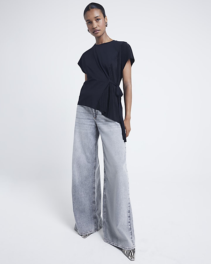 Black plisse hybrid belted top River Island Very well made.