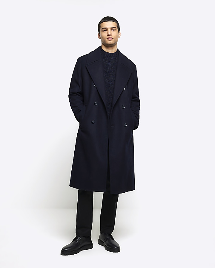 Navy regular fit wool blend premium coat River Island Very well made.