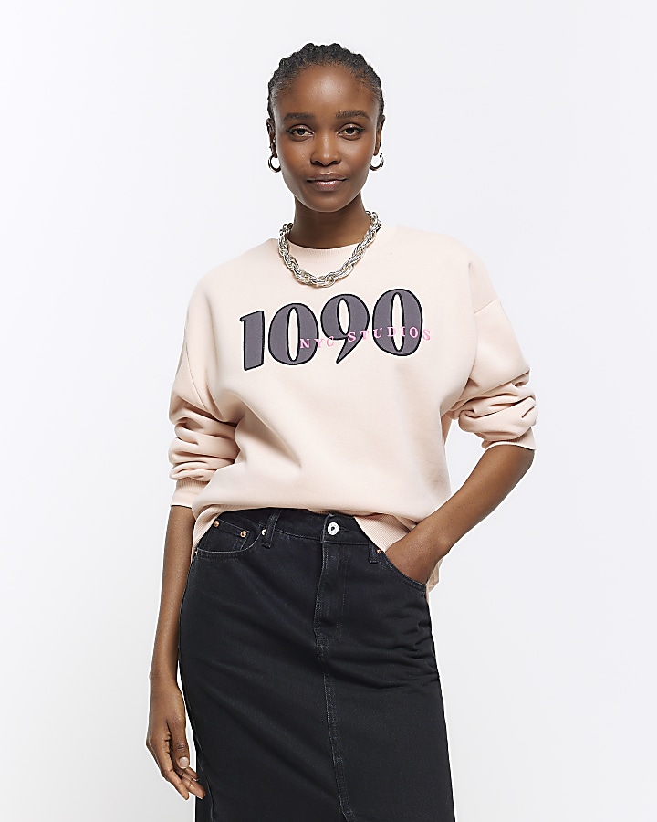 Pink graphic oversized sweatshirt River Island Very well made.