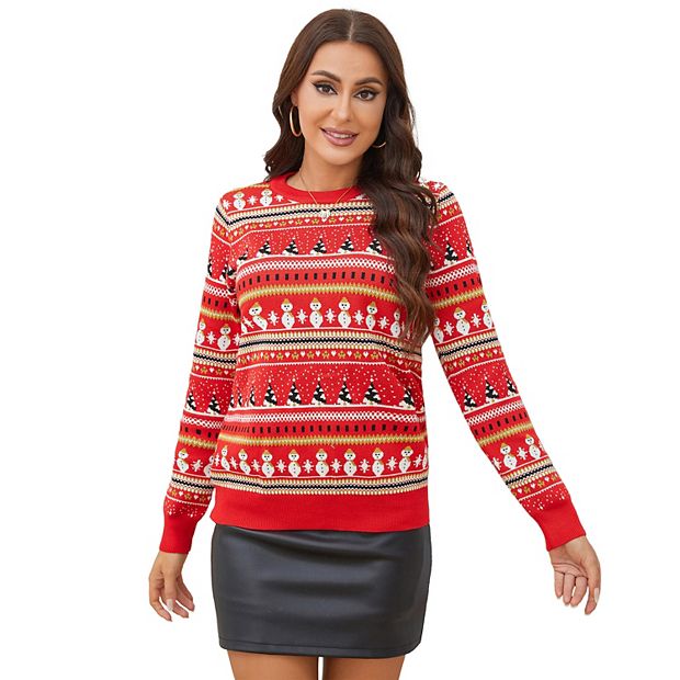 Women s Christmas Sweatshirt Long Sleeve Pullover Novelty Snowflake Tree Patterns Knitted Sweaters Very well made.