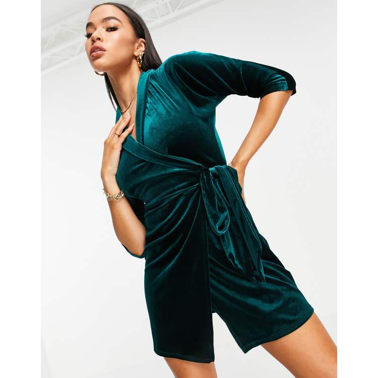 ASOS DESIGN Vestito corto avvolgente in velluto verde bottiglia Very well made.