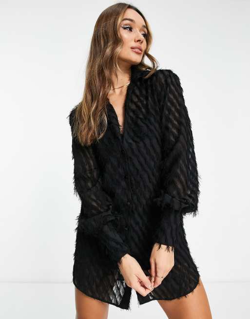 ASOS DESIGN Vestito corto chemisier extra largo con texture morbida nero Very well made.