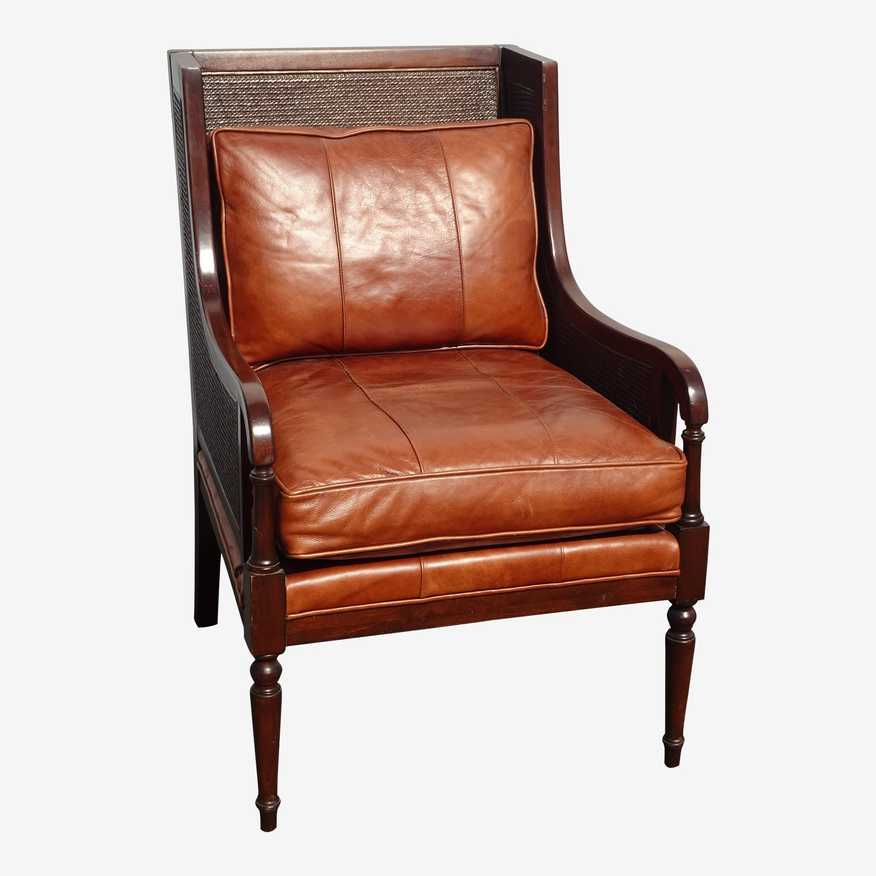 Vintage Tommy Bahama Brown Leather Rattan Lounge Chair Very well made.