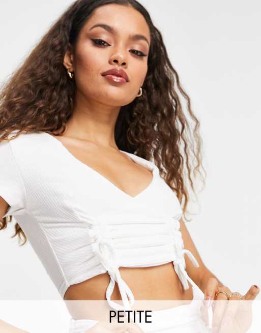 Club L London Petite ruched front plunge front crop top in white part of a set Very well made.