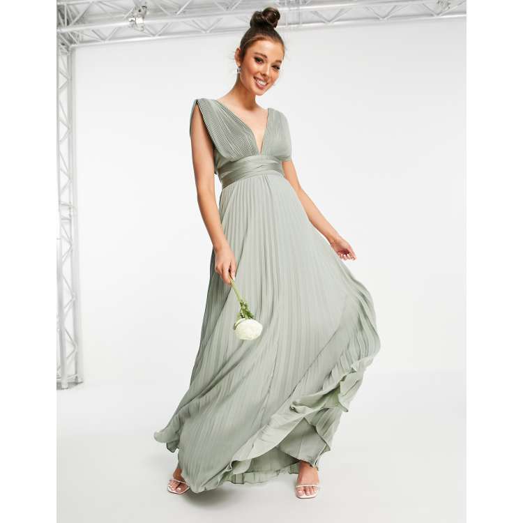 ASOS DESIGN Bridesmaid pleated cami maxi dress with satin wrap waist in olive MGREEN Very well made.
