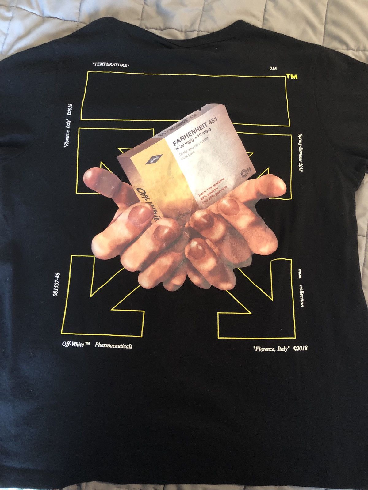 Off White SS18 Fahrenheit 451 Pill Box T Shirt Men s Fashion Tops Sets Tshirts Polo Shirts on Carousell Very well made.