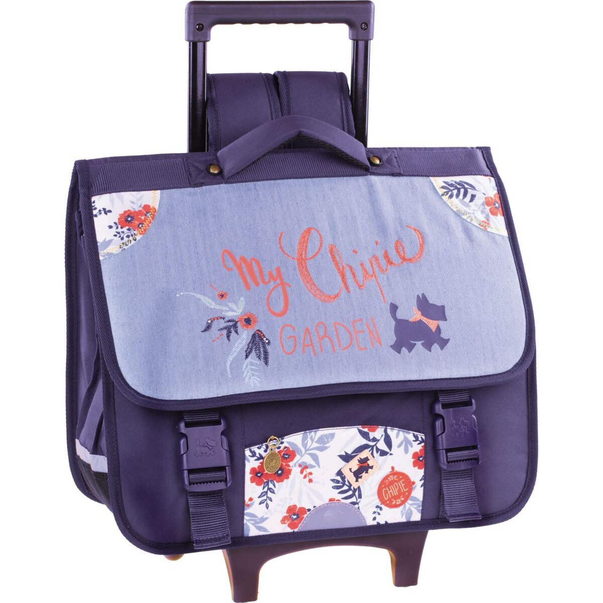 CHIPIE Cartable roulettes 41 cm CM1 CM2 bleu motif feuilles Very well made.