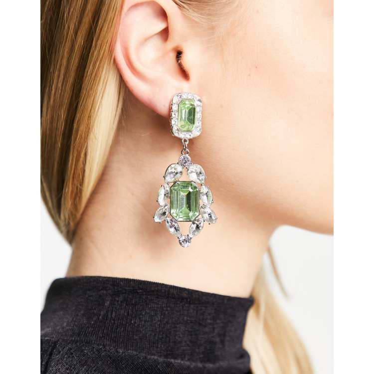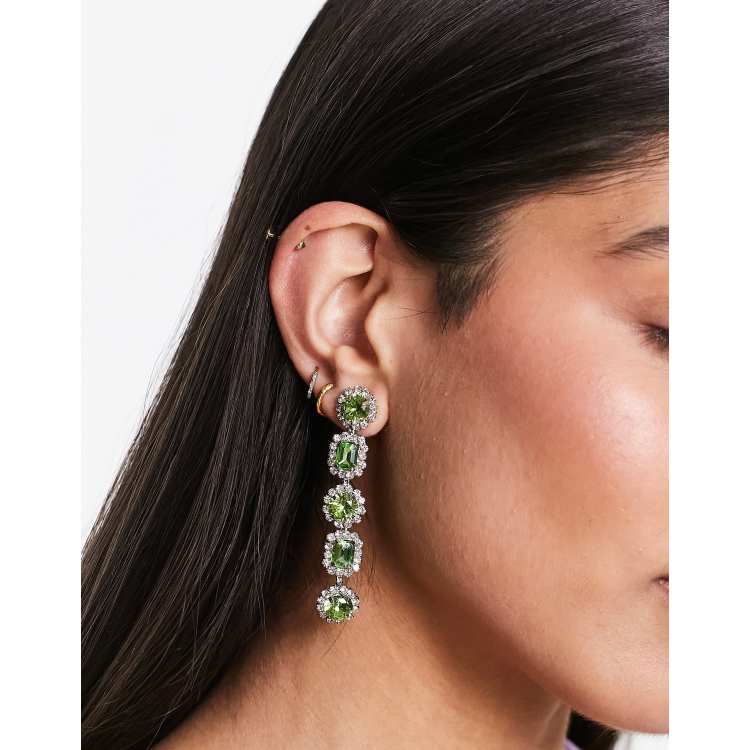ASOS DESIGN drop earrings in mixed green crystal drench linear Very well made.