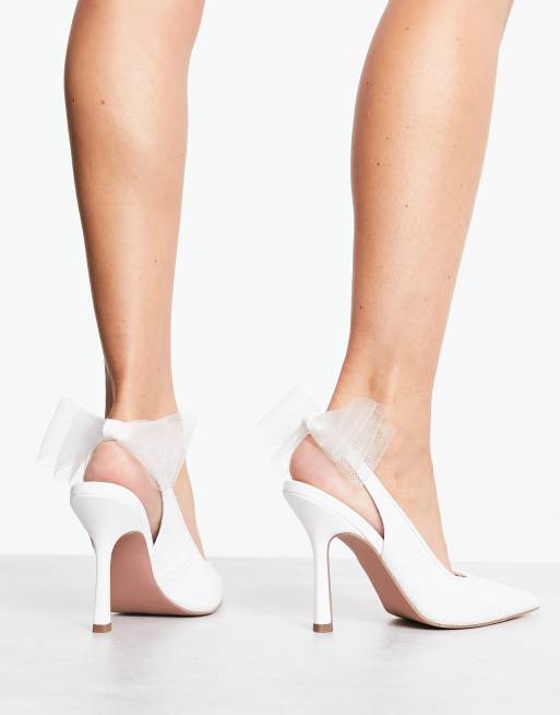 ASOS DESIGN Petal bow detail slingback high heeled shoes in ivory Very well made.
