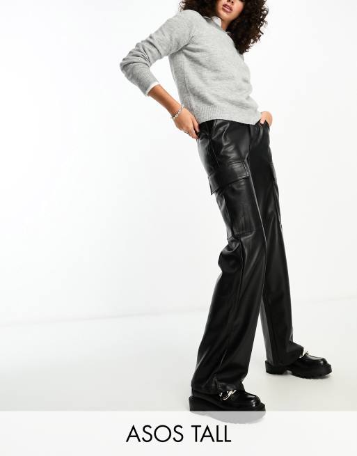 ASOS DESIGN Tall faux leather cargo pants in black Very well made.