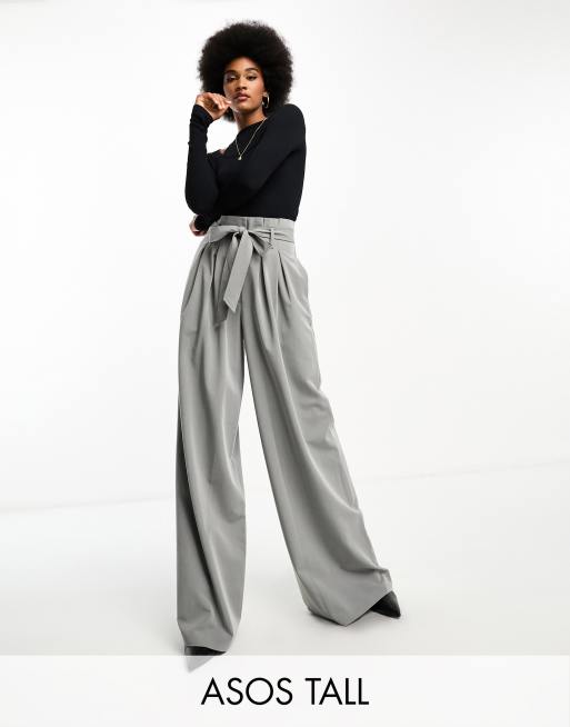 ASOS DESIGN Tall belted paperbag co ord trouser in light grey Very well made.