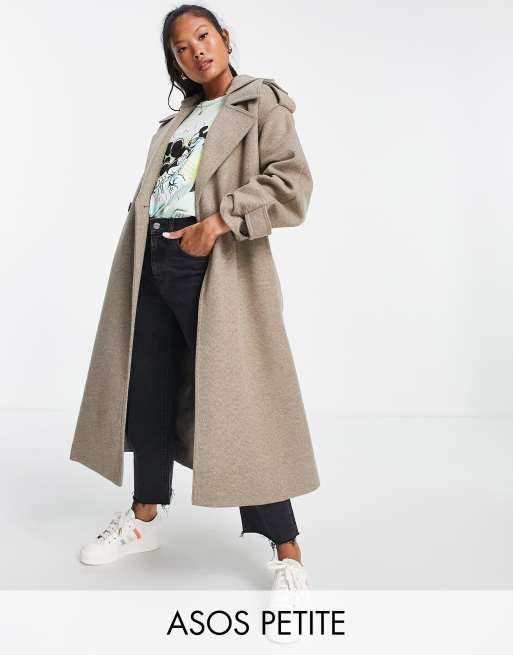 ASOS DESIGN Petite longline trench coat in stone Very well made.
