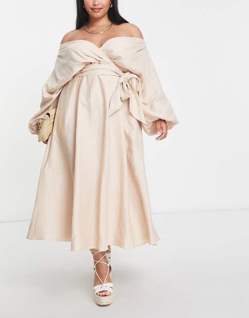 ASOS EDITION Curve linen wrap midi dress with elastic back detail Very well made.