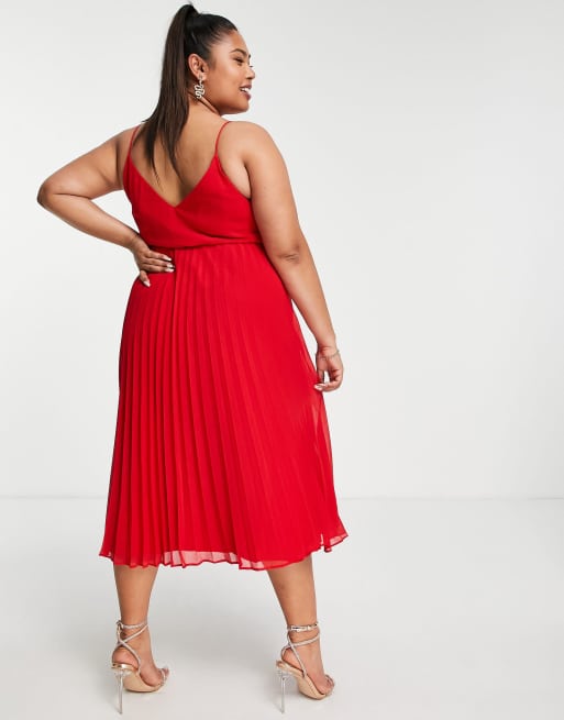 ASOS DESIGN skinny back racer pleated midi dress in red ASOS Very well made.