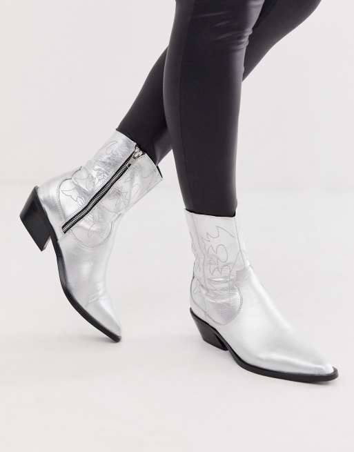 Pull Bear western style knee high boot in silver ASOS Very well made.