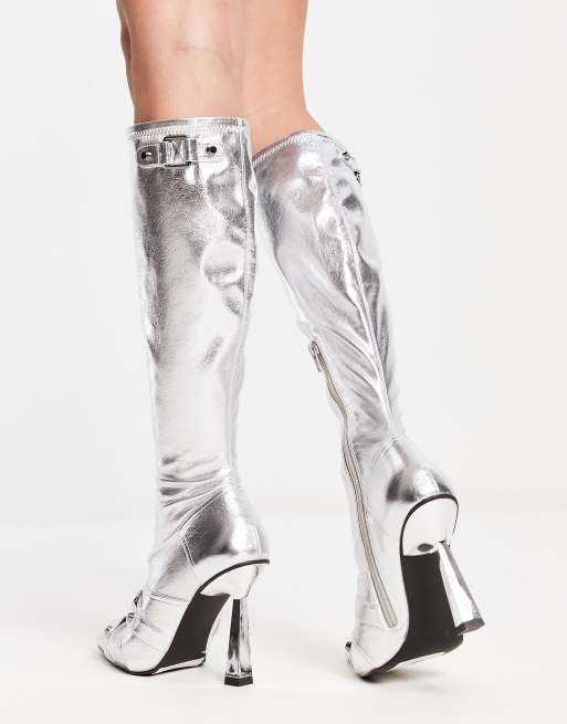 ASOS DESIGN Cannes heeled hardware knee boots in silver ASOS Very well made.