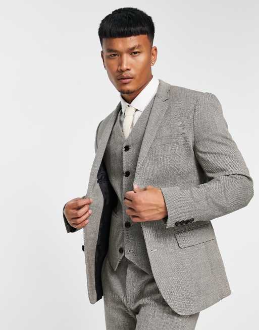 ASOS DESIGN skinny wool mix suit jacket in herringbone in grey ASOS Very well made.