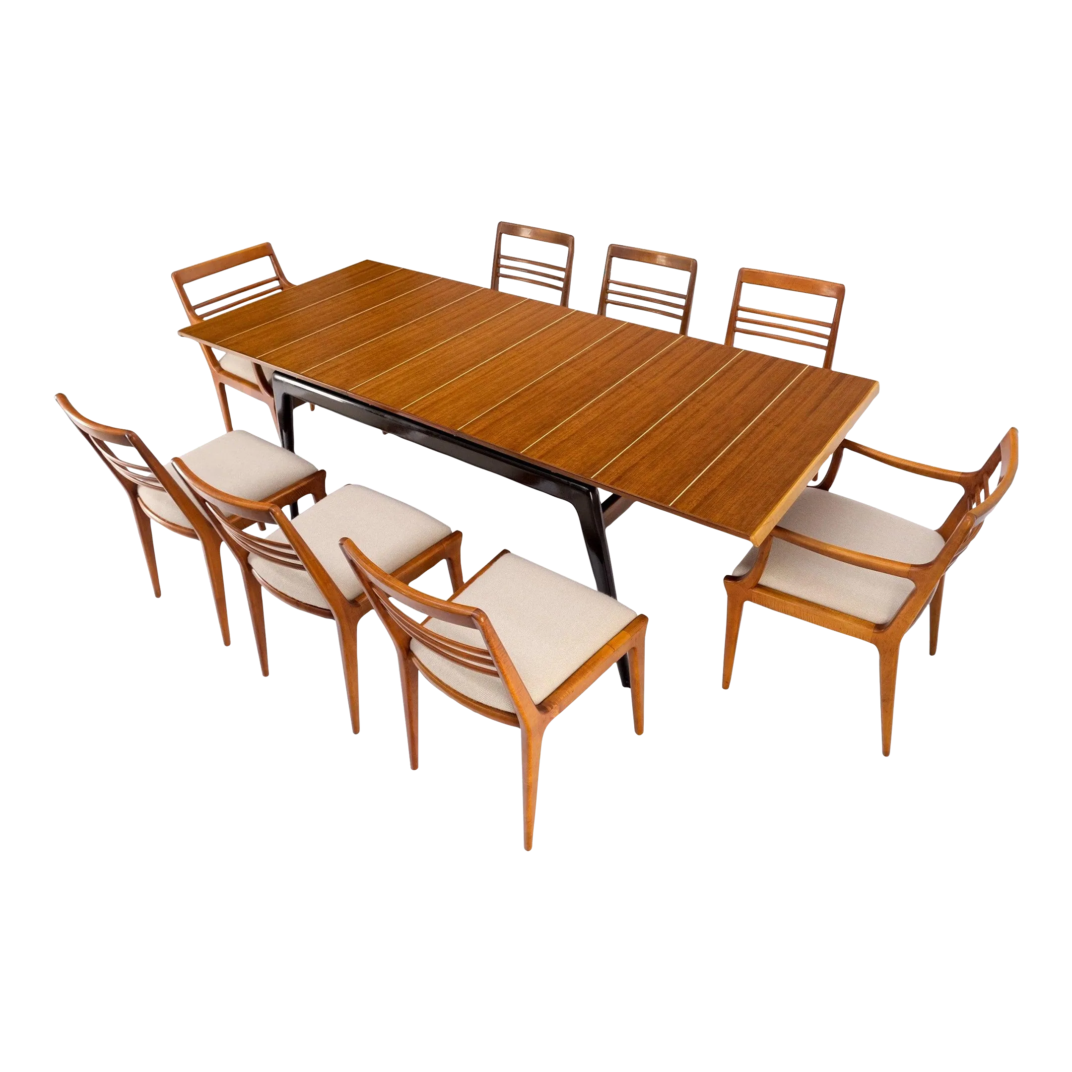 Italian Mid Century Modern Dining Table 8 Chairs Set New Linen Very well made.