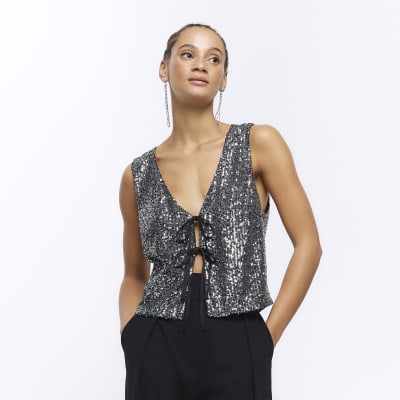 River Island Womens Silver cut out sequin top ShopStyle Very well made.