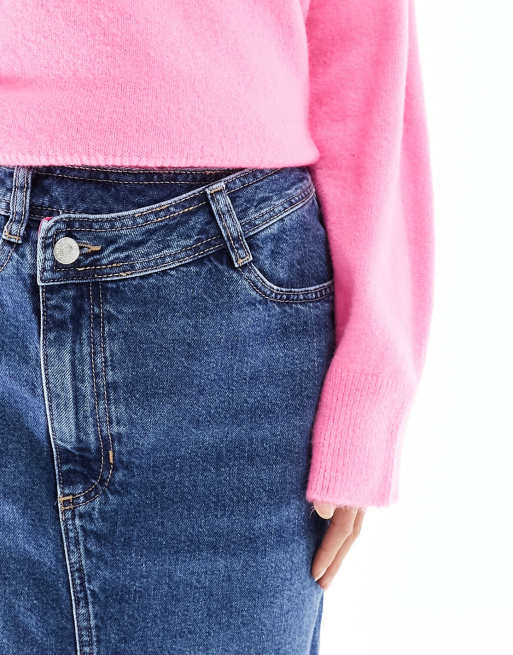 River Island Petite crossover waist denim maxi skirt in midwash blue Very well made.