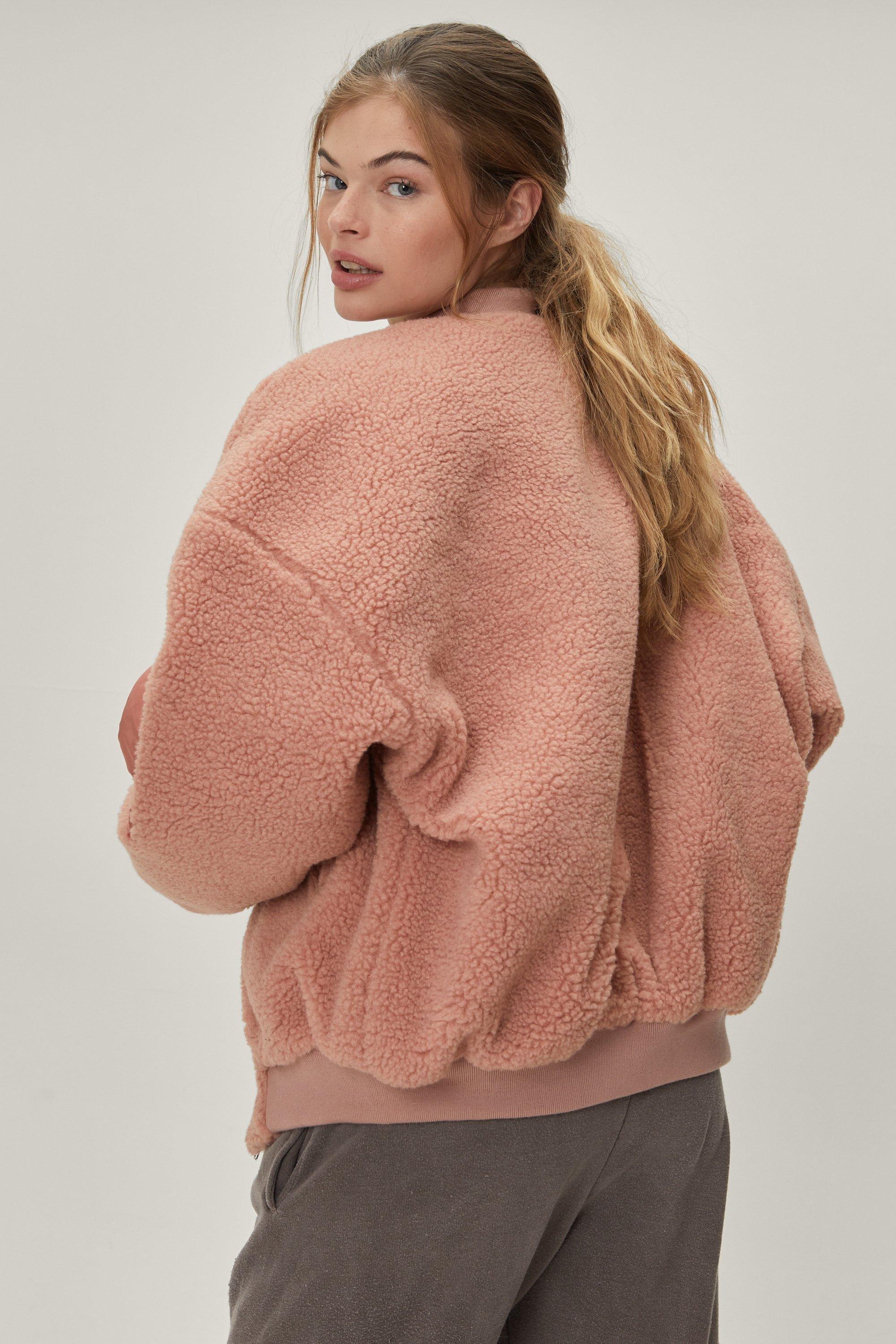 Petite Mid Pink Teddy Borg Bomber Jacket New Look Very well made.
