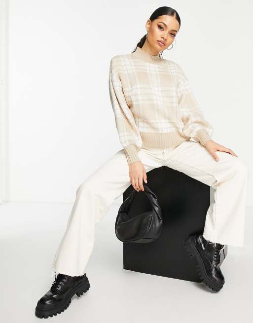 Violet Romance Petite fluffy knit oversized sweater in neutral plaid ASOS Very well made.