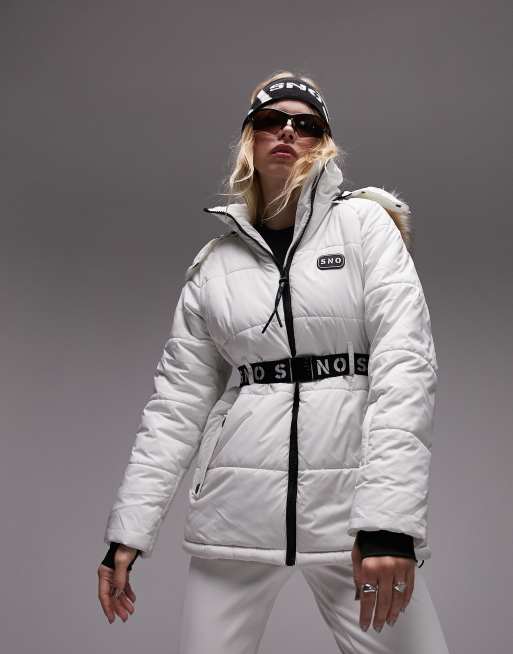 Topshop Sno ski coat with belt and faux fur trim hood in ecru ASOS Very well made.