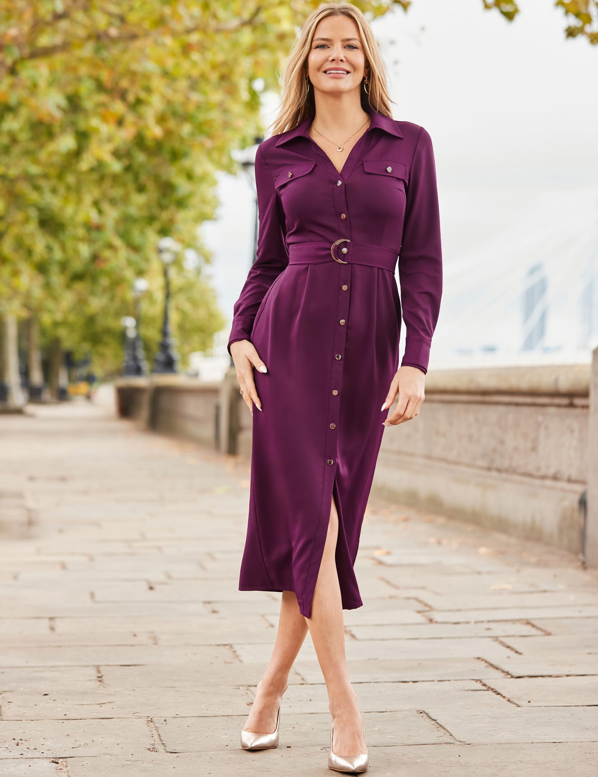 Petite Pleat Front Belted Tailored Midi Dress Very well made.