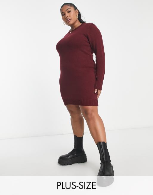 Brave Soul Plus crew neck jumper dress in burgundy Very well made.