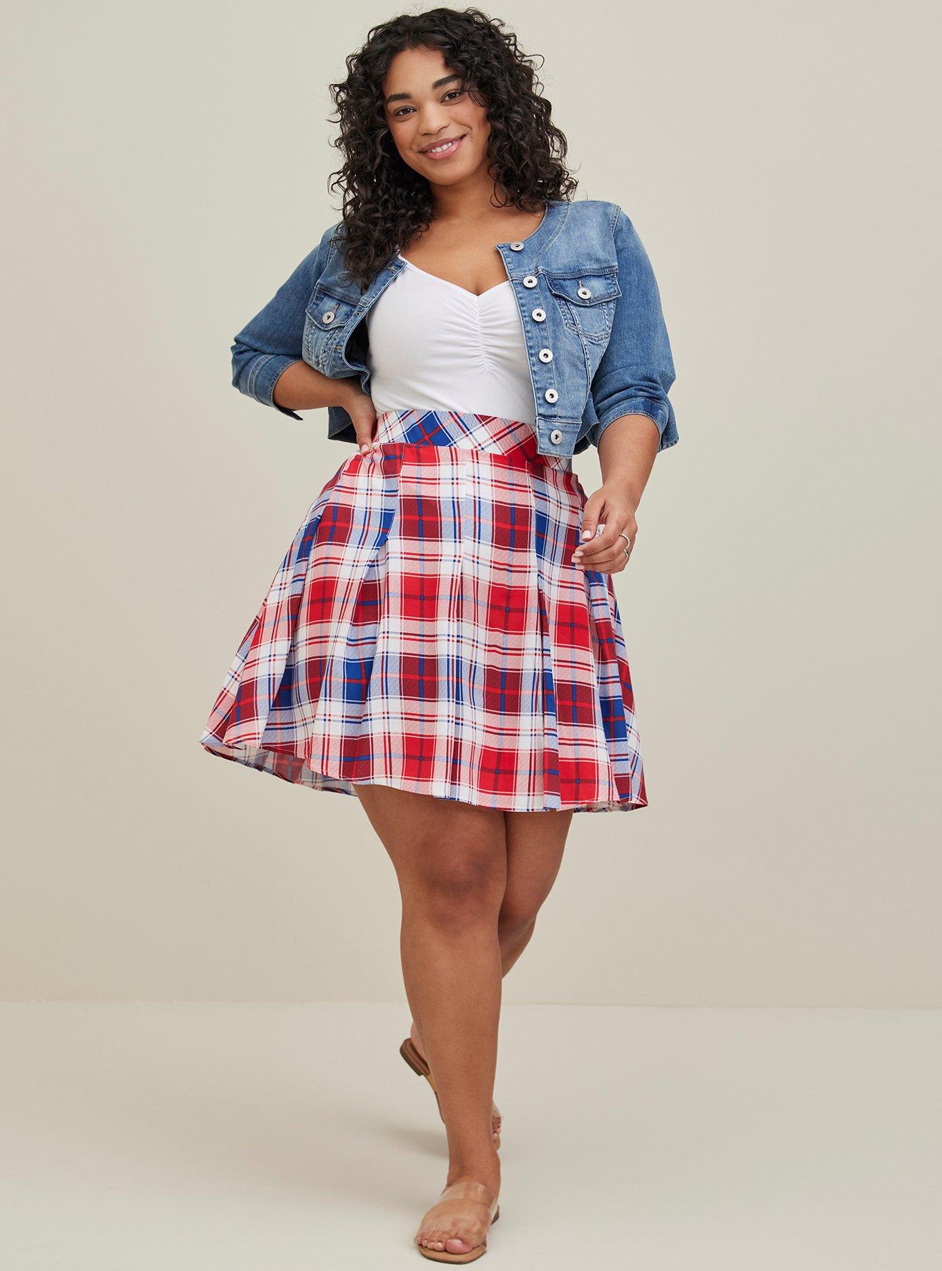 Plus Size Pleated Skater Skirt Challis Plaid Blue Red Torrid Very well made.