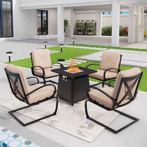5pc Outdoor Set With Spring Motion Chairs 28 Fire Table Beige Captiva Designs Patio Furniture With Removable Cushions Target Very well made.