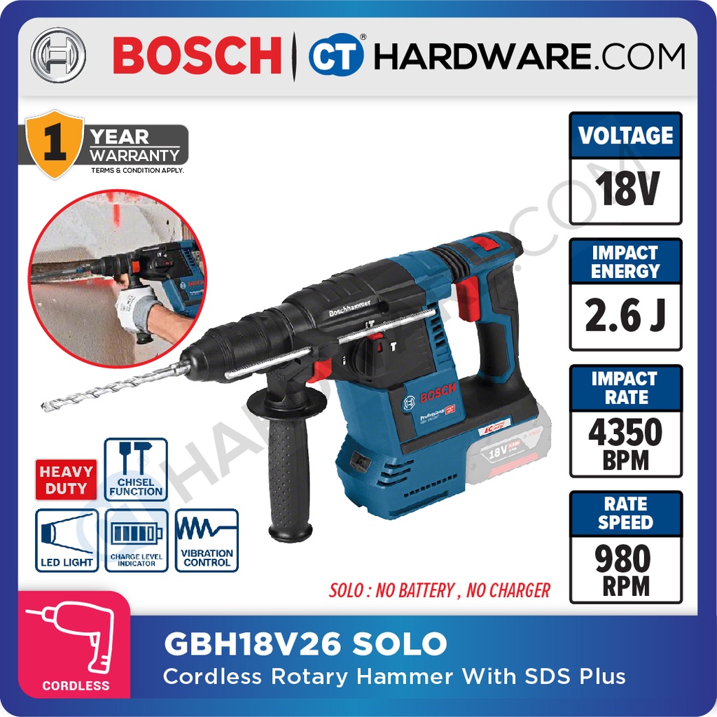 BOSCH GBH 18V 26 SOLO CORDLESS ROTARY HAMMER 18V SDS PLUS 2.6 Very well made.