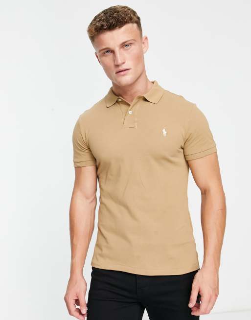 Polo Ralph Lauren icon logo slim fit pique polo in tan Very well made.