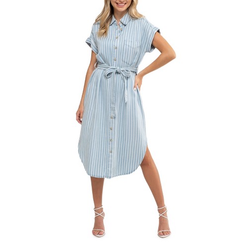 August Sky Women s Front Button Up Stripe Belted Shirt Dress Target Very well made.