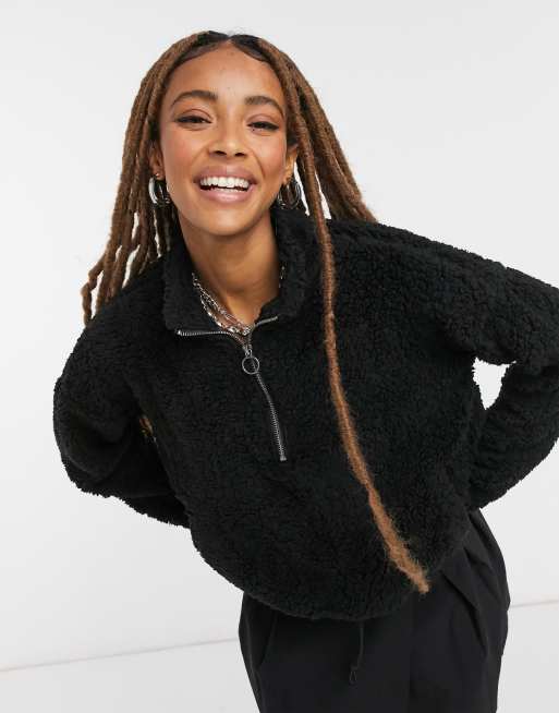 Noisy May half zip teddy sweatshirt with drawstring waist in black Very well made.